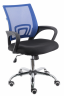 Современное кресло для персонала, с сетчатой спинкой, хромированной крестовиной и механизмом качания.